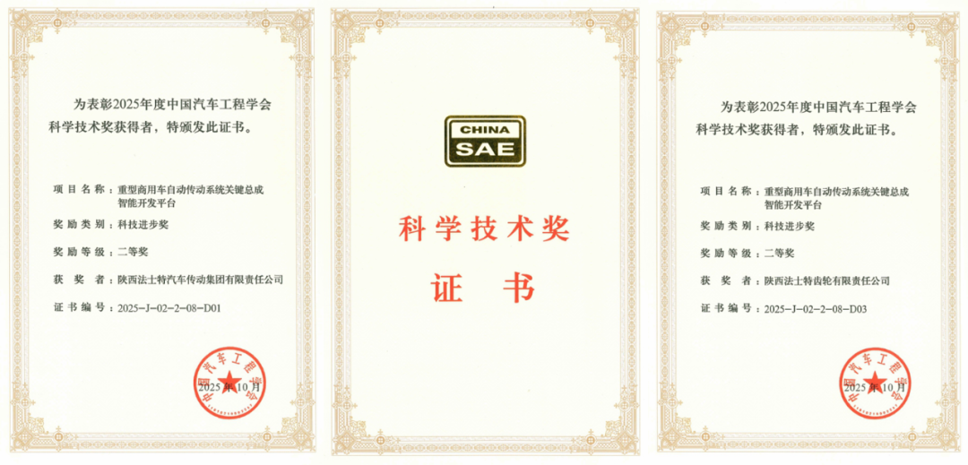 292025-10法士特榮獲中國汽車工程學(xué)會(huì)科技進(jìn)步二等獎(jiǎng) 發(fā)布日期:2025-10-29 發(fā)布日期:2025-10-29 點(diǎn)擊量:80 點(diǎn)擊量:80近日,2025年度“中國汽車工程學(xué)會(huì)科學(xué)技術(shù)獎(jiǎng)”正式揭曉,法士特參與完成的“重型商用車自動(dòng)傳動(dòng)系統(tǒng)關(guān)鍵總成智能開發(fā)平臺(tái)”項(xiàng)目榮獲二等獎(jiǎng)。作為我國汽車行業(yè)規(guī)格最高、權(quán)威性最強(qiáng)的科技獎(jiǎng)項(xiàng),中國汽車工程學(xué)會(huì)科技進(jìn)步獎(jiǎng)是首個(gè)經(jīng)國家科技獎(jiǎng)勵(lì)辦公室登記批準(zhǔn)的社會(huì)力量承辦獎(jiǎng)項(xiàng),也是唯一覆蓋全國汽車行業(yè)的國家級(jí)科技獎(jiǎng)項(xiàng)...