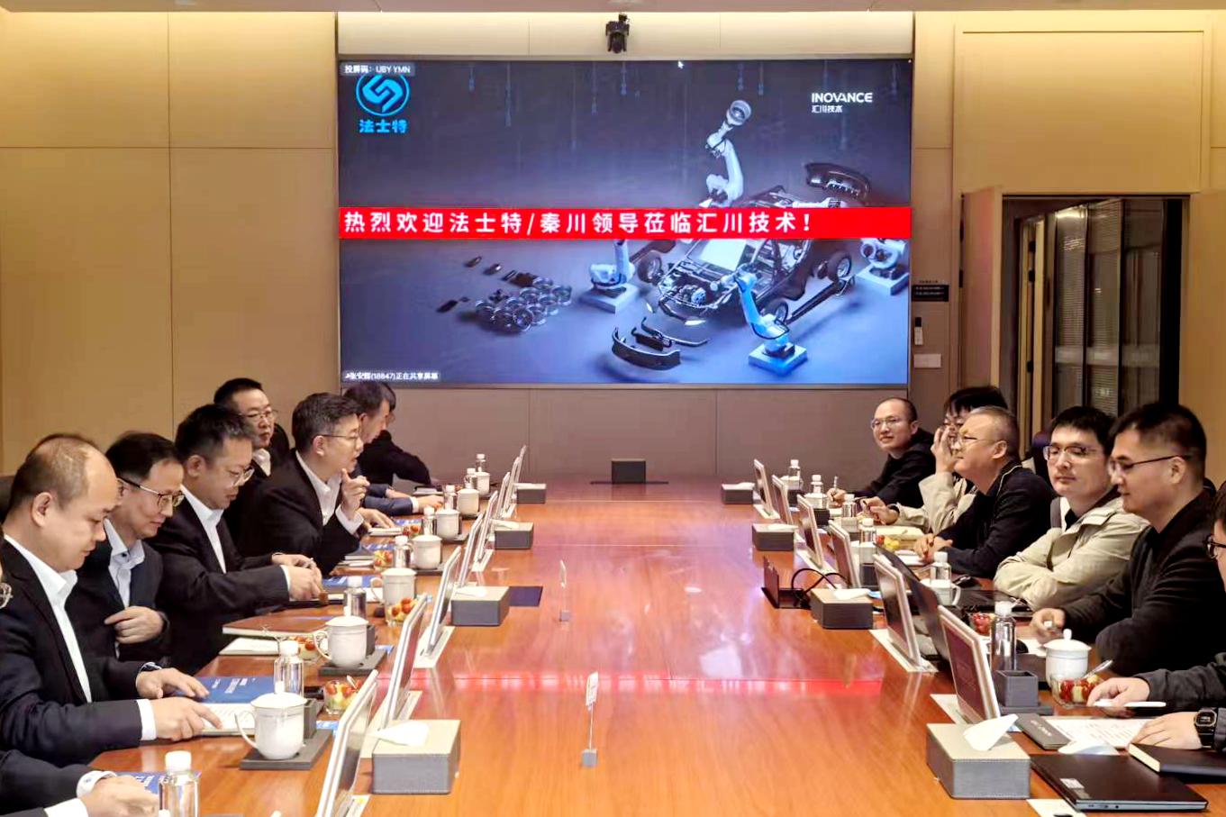 242025-10馬旭耀董事長(zhǎng)率隊(duì)訪問蘇州匯川公司 發(fā)布日期:2025-10-24 發(fā)布日期:2025-10-24 點(diǎn)擊量:155 點(diǎn)擊量:15510月22日,法士特集團(tuán)黨委書記、董事長(zhǎng),秦川集團(tuán)黨委書記、董事長(zhǎng)馬旭耀率隊(duì)訪問蘇州匯川技術(shù)有限公司,先后與匯川技術(shù)聯(lián)合創(chuàng)始人、副總裁張衛(wèi)江,匯川聯(lián)合動(dòng)力董事長(zhǎng)李俊田,圍繞新能源產(chǎn)品創(chuàng)新發(fā)展、智能制造轉(zhuǎn)型升級(jí)、企業(yè)文化建設(shè)等展開深入交流。座談中,馬旭耀董事長(zhǎng)詳細(xì)介紹了法士特、秦川在生產(chǎn)運(yùn)營(yíng)、科技研發(fā)、市...